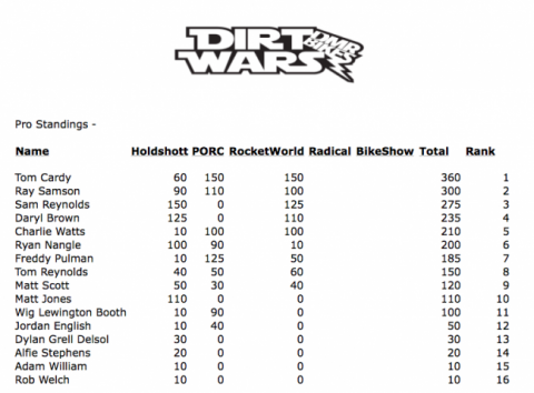 After 3 rounds of the Pro series the points tables look like this...