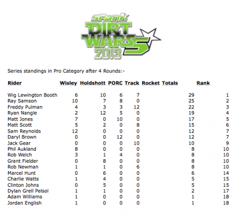 Coming into the final round of the 2013 series, here are the updated series ranking tables for Pro & Open categories.